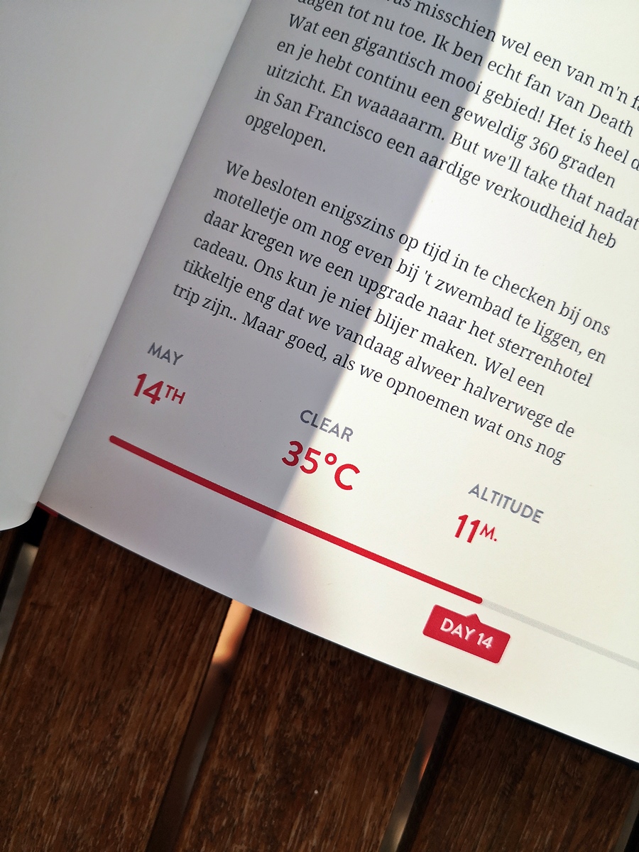 Het leukste aan dit fotoboek van Polarsteps vind ik dat het niet alleen foto’s zijn: ook je verhalen staan erbij, en per bestemming zelfs de temperatuur die je op dat moment had en het hoogteverschil! Daarnaast begint je boek met de gehele route die je hebt afgelegd en dat is zó gaaf om te zien. Dat hoort er toch bij! En als je over 10 jaar dit boek er weer bij pakt, weet je weer precies wat je hebt gedaan, waar en wanneer. Want zonder tekst, gaat dat toch een beetje verwateren…